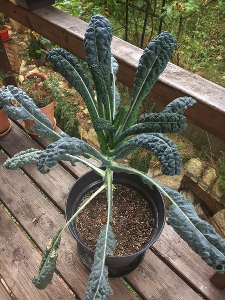 Jak vidíte, toskánská kapusta je totální nezmar. Nejen, že přežilo můj pěstební freestyle, ale ještě si to dost v pohodě bendí i v nádobě.