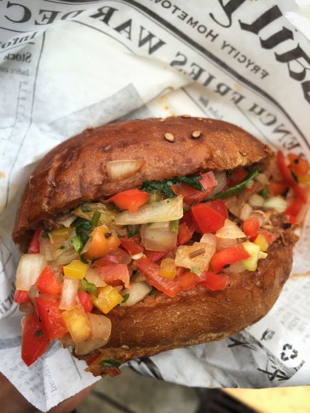 Z ochutnávek vybírám je jednu pecku, co mě bavila nejvíc. Pulled pork od Prague Jerk Station (95 Kč). Trefili se do počasí a měli to vážně dost vylad…
